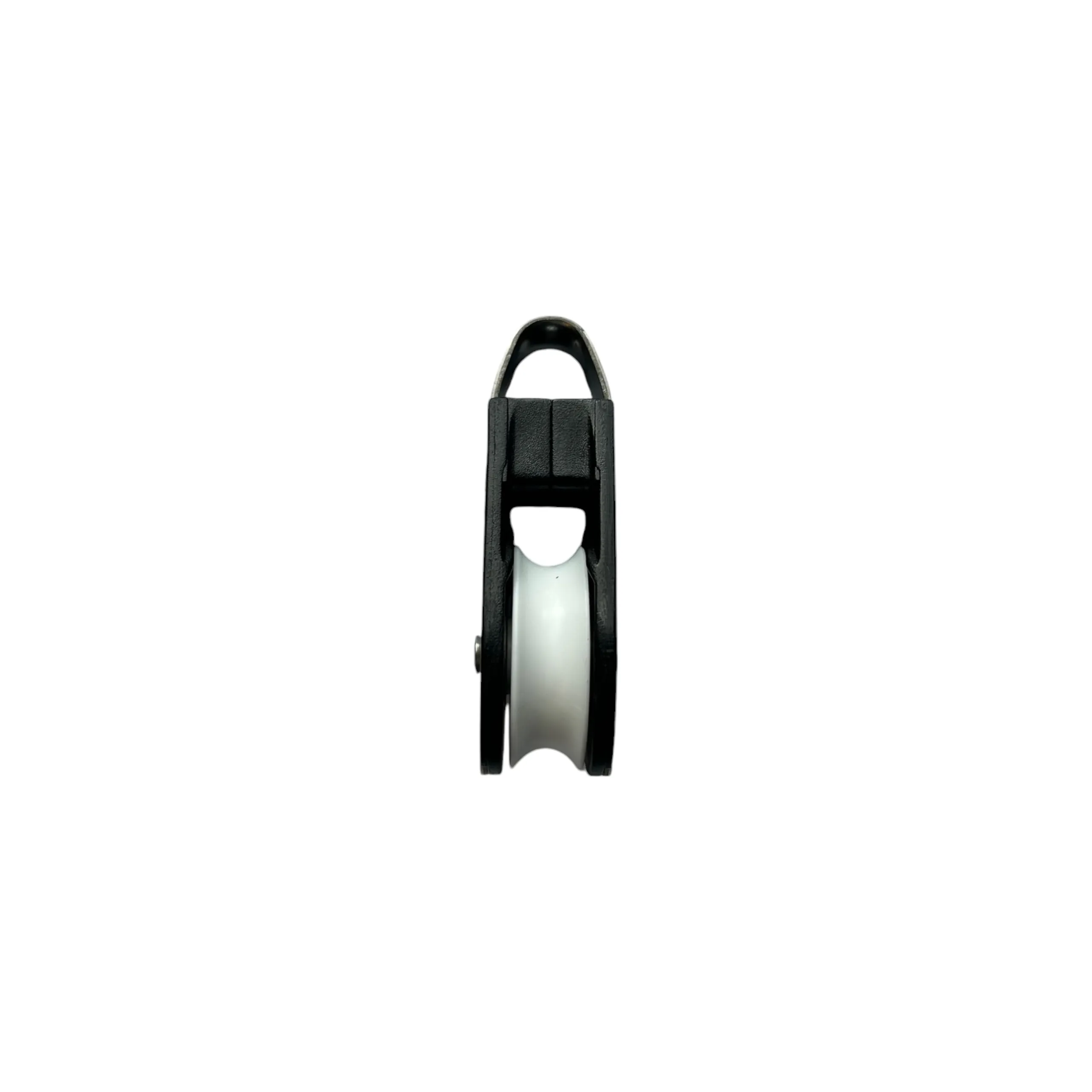 Blok pojedynczy PEM z rolką o średnicy 40 mm i uchem montażowym to uniwersalny element osprzętu żeglarskiego, stosowany w układach linowych na jachtach turystycznych i sportowych. Solidna konstrukcja zapewnia płynną pracę liny oraz trwałość w wymagających warunkach morskich.