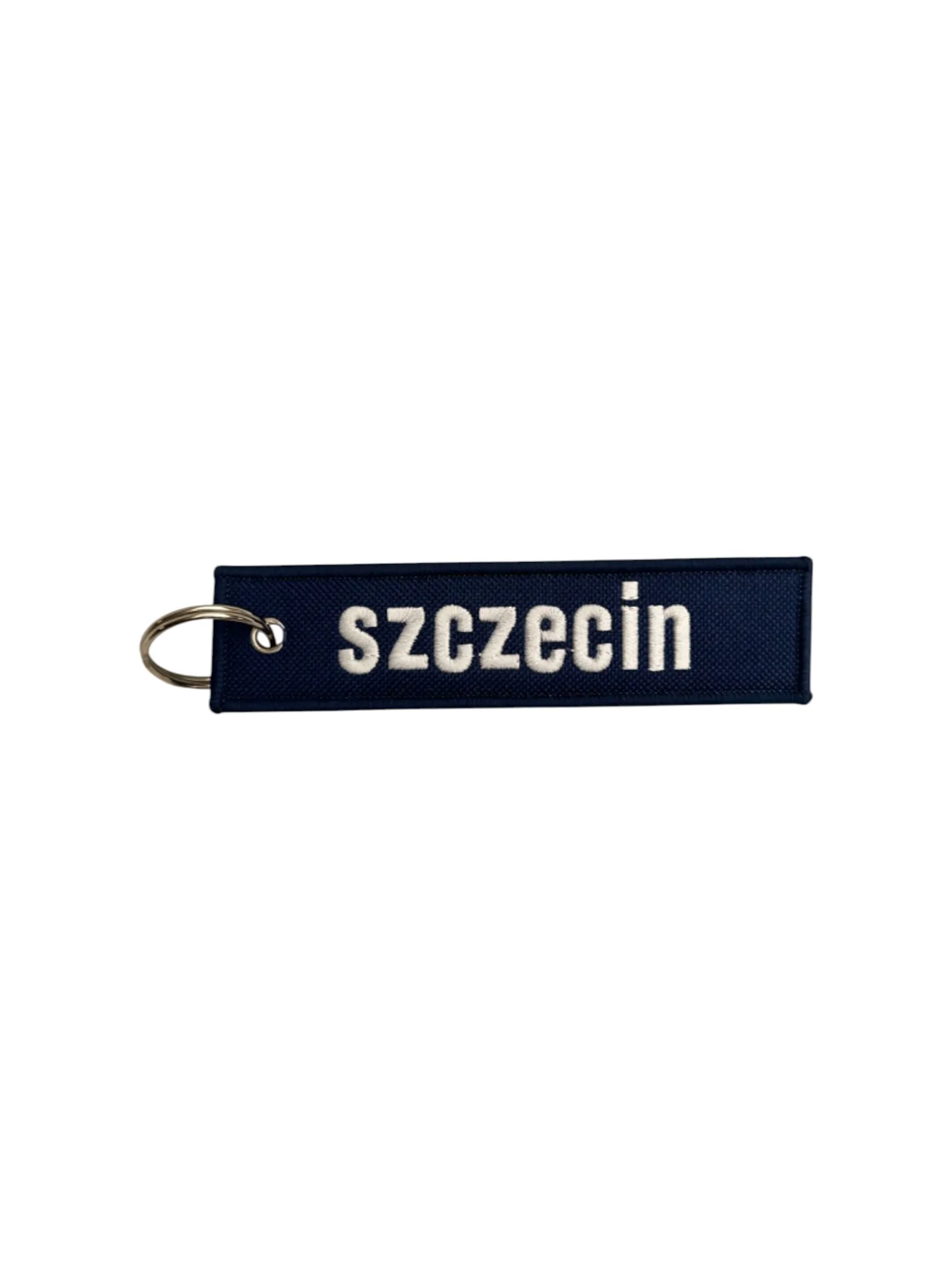 Ten minimalistyczny, granatowy brelok łączy w sobie elegancję marynistyczną z dumą z lokalizacji. Z jednej strony widnieje prosty napis „szczecin”, z drugiej – dokładne współrzędne geograficzne (53°26′17″N 014°32′32″E) oraz symboliczne koło sterowe, podkreślające żeglarski charakter miasta.