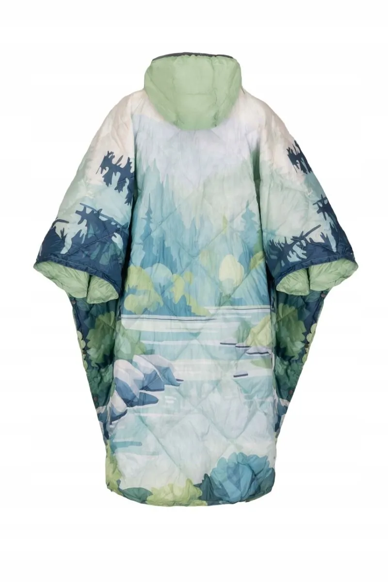 Poncho DH Garden Zielona Rzeka to wyjątkowe połączenie lekkości, ciepła i praktyczności. Inspirowany naturą wzór w odcieniach zieleni i błękitu sprawia, że poncho świetnie wpisuje się w klimat outdoorowych aktywności – od biwaku nad rzeką po wieczór przy ognisku.