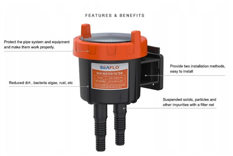 Wysokiej jakości uniwersalny filtr wody zaburtowej przeznaczony do chłodzenia silnika stacjonarnego łodzi, klimatyzacji, studzienki prysznicowej oraz całej wodnej instalacji jachtowej. Wykonany z tworzywa sztucznego.