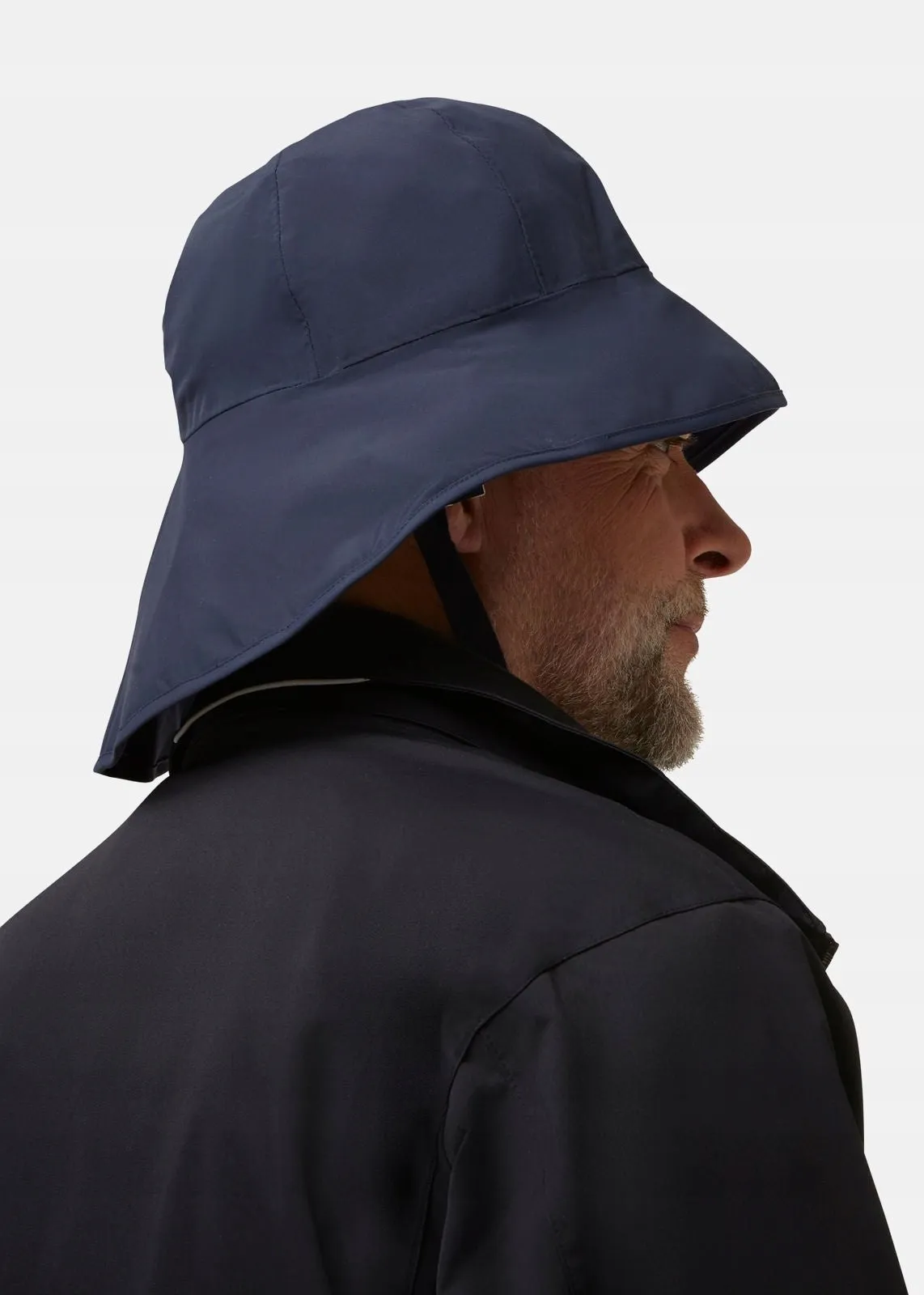 Kapelusz sztormowy granatowy Crazy4Sailing to niezawodna ochrona przed deszczem i wiatrem podczas żeglugi oraz innych aktywności na wodzie. Wykonany z wodoodpornego materiału, skutecznie zabezpiecza głowę przed wilgocią, a szerokie rondo pomaga chronić twarz, uszy i kark przed zaciekami deszczu.