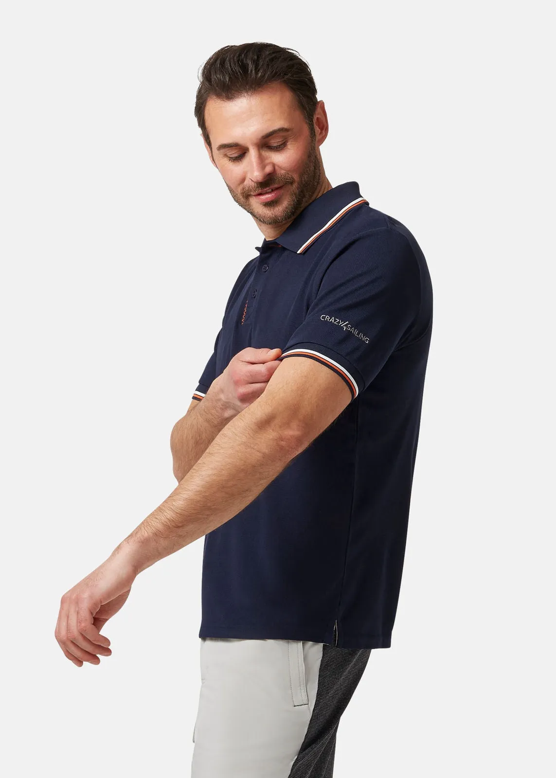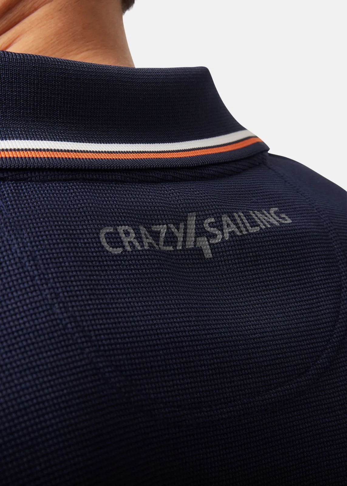 Koszulka Polo Sport w kolorze granatowym od Crazy4Sailing to połączenie technicznej funkcjonalności z żeglarską elegancją. Wykonana z 100% niegniotącego się poliamidu, zapewnia wygodę w każdych warunkach – na wodzie, w marinie i podczas aktywności na lądzie.