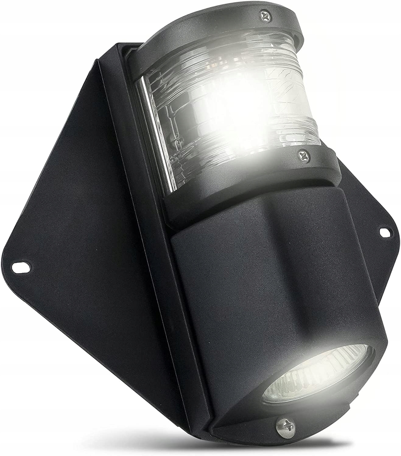 Lampa nawigacyjna masztowa LED 225° z podświetleniem pokładu to funkcjonalne rozwiązanie przeznaczone do montażu na maszcie jachtu lub łodzi motorowej. Łączy w sobie białe światło nawigacyjne 225° oraz dodatkowe oświetlenie pokładu, dzięki czemu jedna lampa spełnia dwie funkcje – poprawia widoczność jednostki na wodzie oraz ułatwia pracę na pokładzie po zmroku.