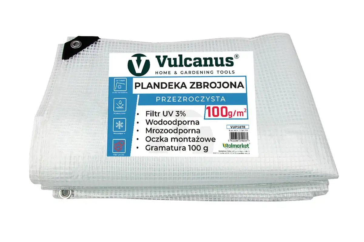 Przezroczysta, zbrojona plandeka VULCANUS 4×6 m to uniwersalna osłona do zastosowań domowych i zewnętrznych. Wykonana z polietylenu laminowanego obustronnie, z wzmocnieniami na całej powierzchni, narożnikami zabezpieczającymi i oczkiem co 100 cm dla wygodnego mocowania.