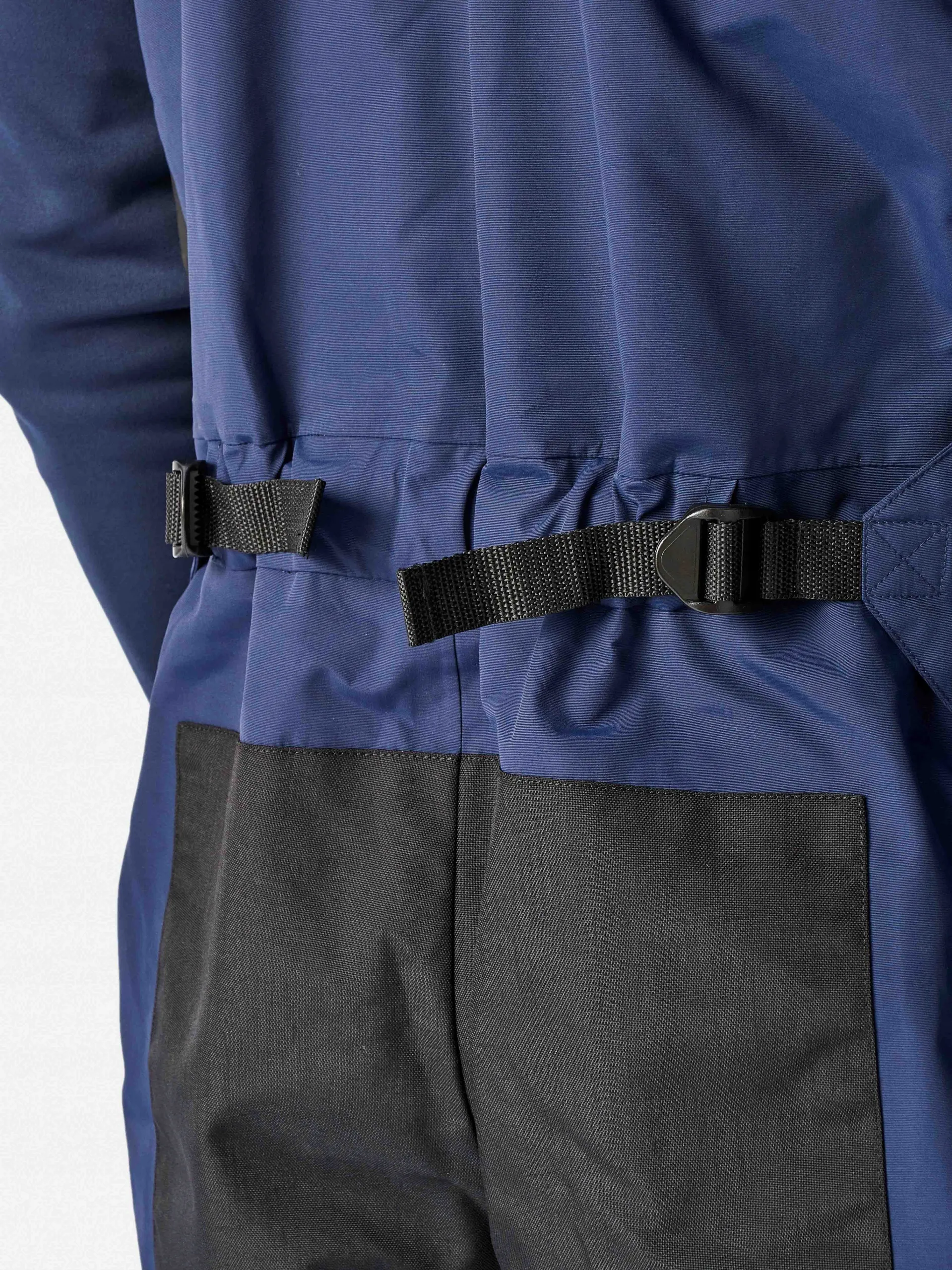 Boczne panele z elastycznego materiału zwiększają swobodę ruchu i poprawiają komfort termiczny przy wielogodzinnym noszeniu. Wysoki krój typu Hi-Fit chroni dolną część pleców i brzuch, a elastyczne szelki zapinane na rzepy oraz podwójna regulacja w pasie umożliwiają indywidualne dopasowanie.