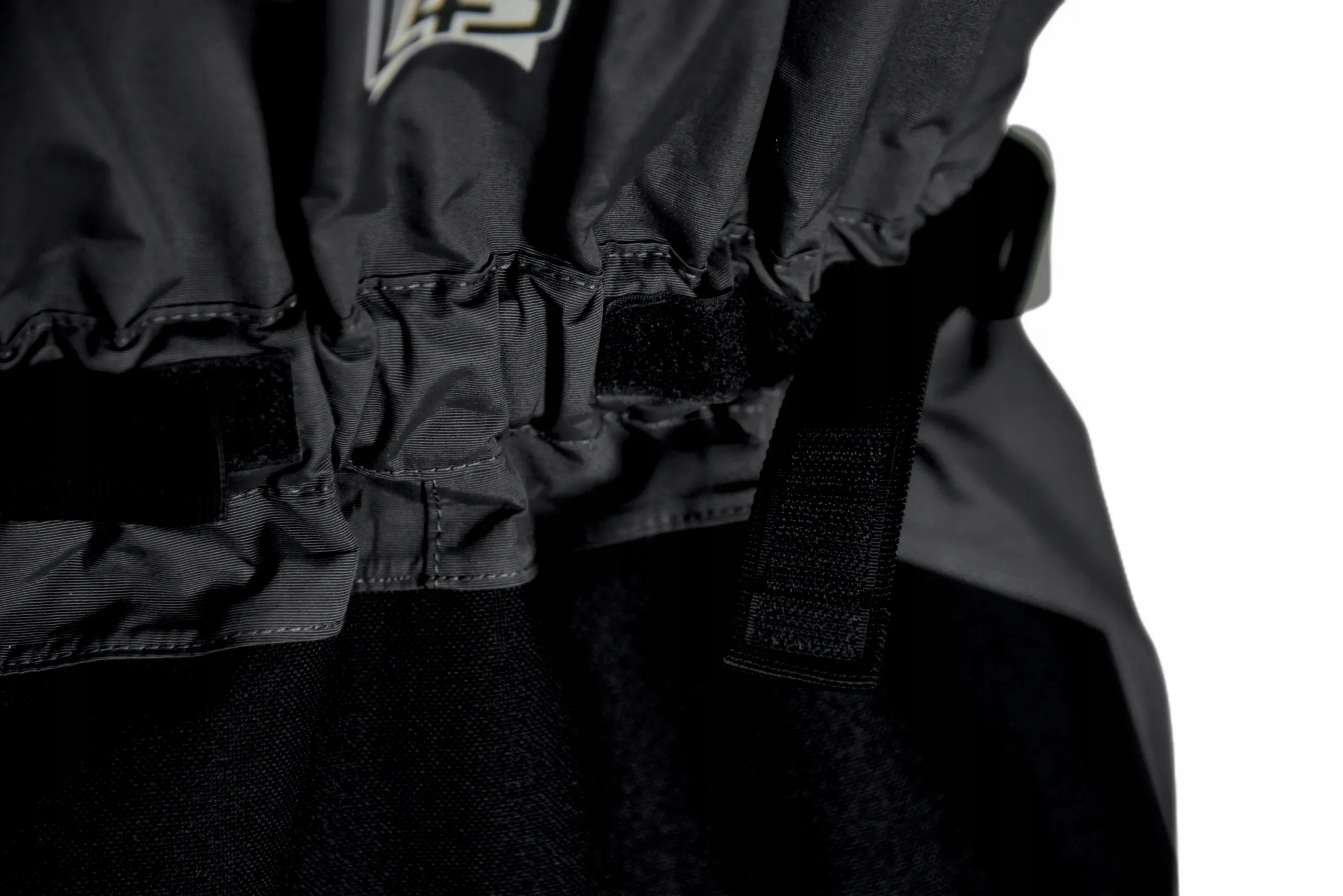 Nogawki posiadają regulację na rzep oraz mankiet wewnętrzny przeciwdeszczowy, który skutecznie zabezpiecza przed wlewaniem się wody. Na udzie umieszczono kieszeń zapinaną na suwak, idealną na akcesoria potrzebne na pokładzie. Neutralny grafitowy kolor carbon sprawia, że spodnie pasują do kurtki Stavanger i innej odzieży żeglarskiej.