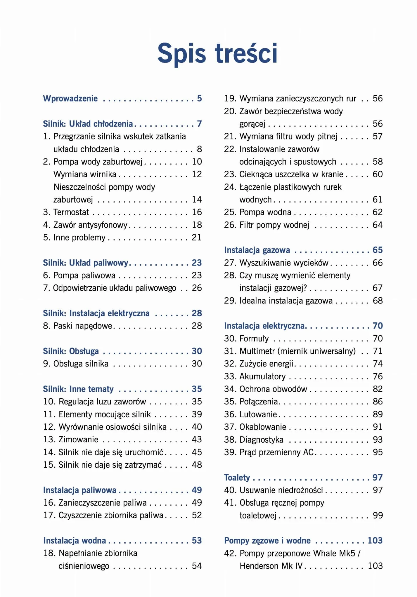 Książka obejmuje 67 najczęstszych czynności serwisowych i napraw – każda z nich ma określony poziom trudności w skali 1–5. Wszystkie zadania rozpisano na proste etapy, a zdjęcia i schematy prowadzą przez cały proces od diagnozy do wykonania.