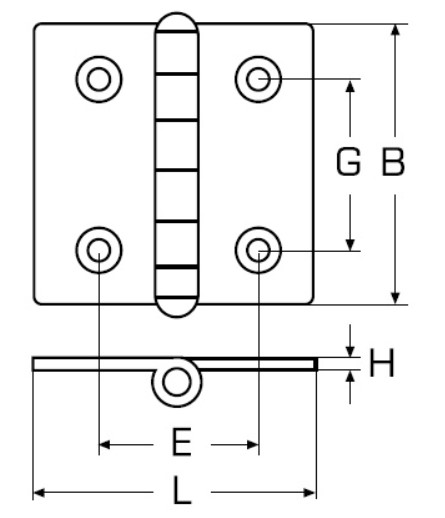 Zawias po rozłożeniu ma wymiary 50 × 50 mm, a grubość materiału 4 mm gwarantuje dużą stabilność i trwałość. Standardowe otwory montażowe o średnicy 5,3 mm pozwalają na łatwy montaż z użyciem typowych wkrętów lub śrub.